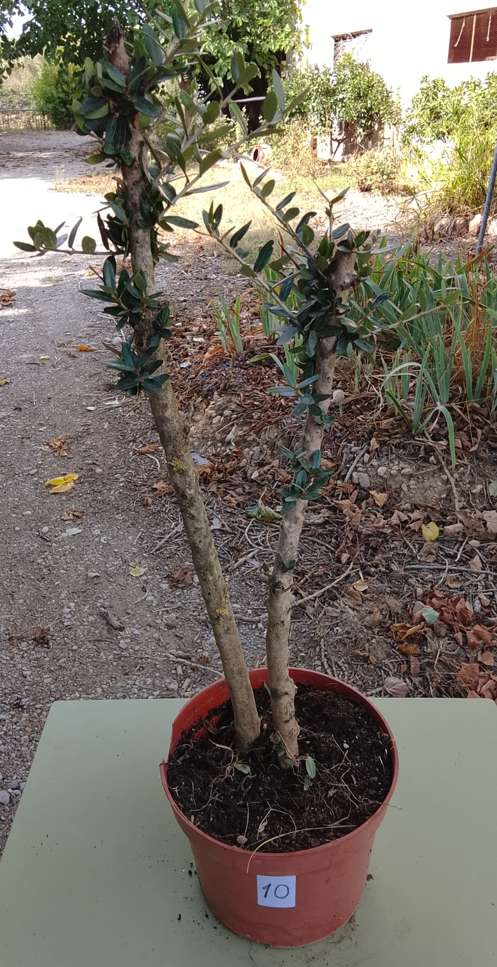 Olivo ornamental de 10 años de edad. Su tamaño aproximado es de 100x300x200 cm. Se presenta con malla para trasplantar o maceta. Se puede hacer decorativo de diferentes formas, con precio y características para consultar (enlace al formulario de contacto).